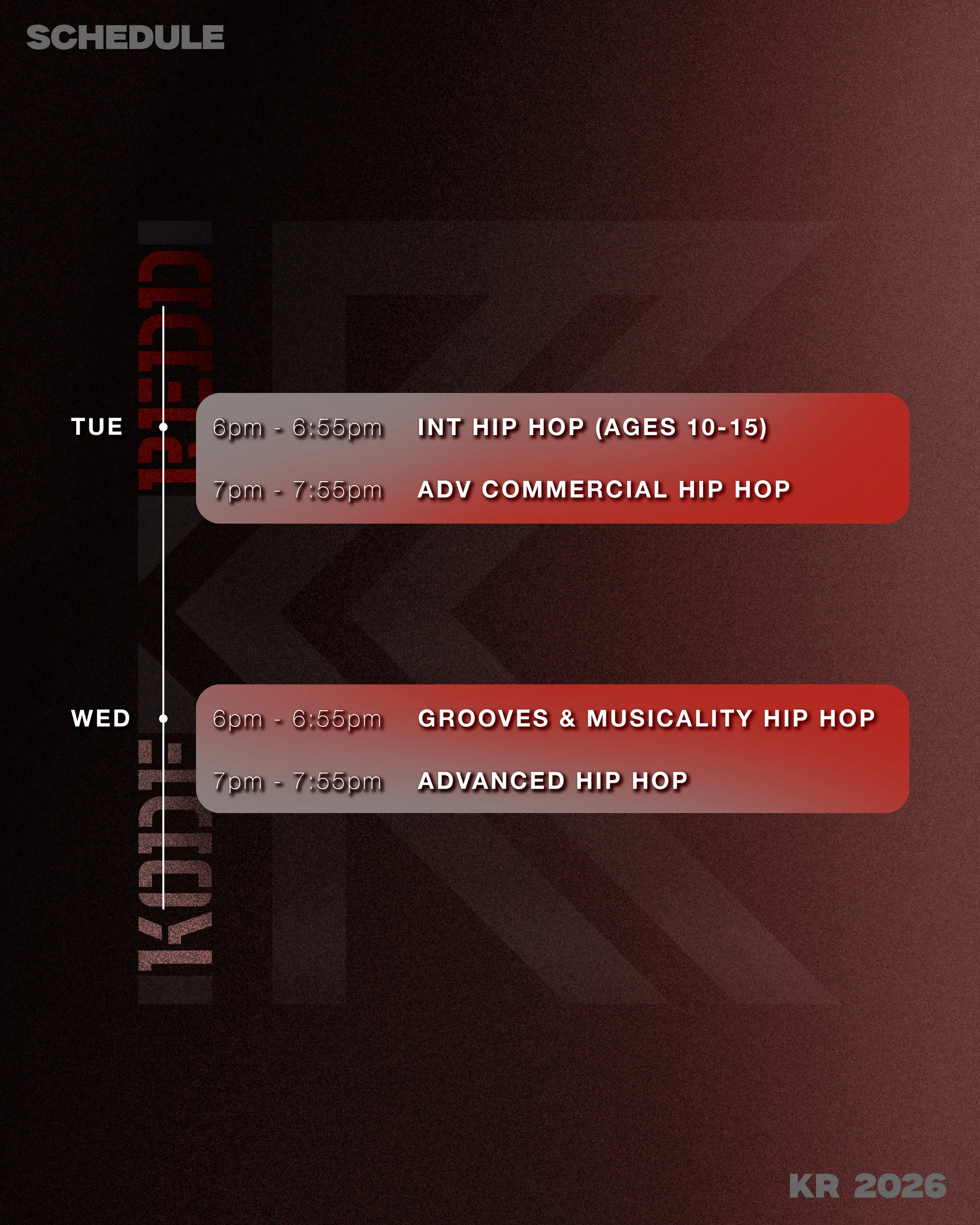 KR STUDIOS CLASS SCHEDULE